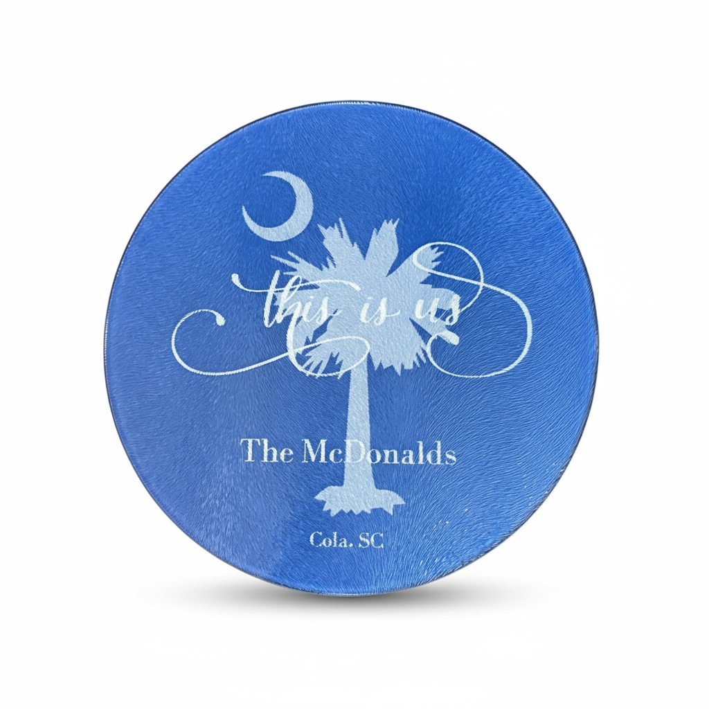 A beautiful blend of function and flair, this custom glass cutting board is the perfect way to elevate any kitchen with a personal touch.